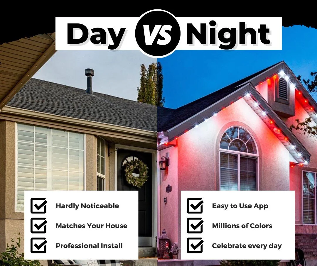 Custom LED holiday and architectural lighting for homes and businesses. Installed once and enjoyed year-round, with no ladders, no hassle, and complete smartphone control.